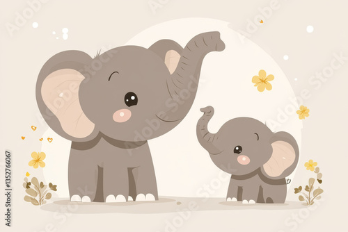 © Janja, Obraz premium Happy cartoon elephants enjoying a sunny day