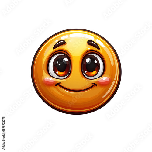 Fototapeta premium Happy Cartoon Emoticon with Bright Eyes and Cheeks Smiling Joyfully on a...