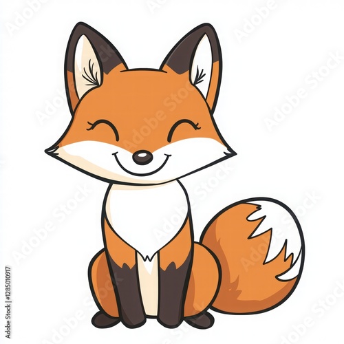 © Phunnada, Obraz premium Happy Cartoon Fox Character with Bright Orange Fur and Smile