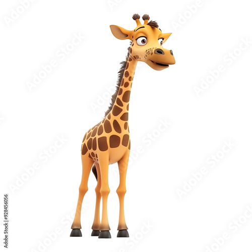 © Michael, Fototapeta premium Happy cartoon giraffe is depicted against a clear background, ideal for use in graphic design, artwork, and educational resources