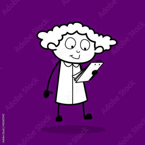 Obraz premium Happy Cartoon Girl Watching a Report List