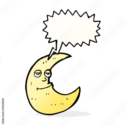 © lineartestpilot, Fototapeta premium happy cartoon moon with speech bubble