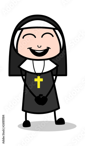 Fototapeta premium Happy - Cartoon Nun Lady Vector Illustration
