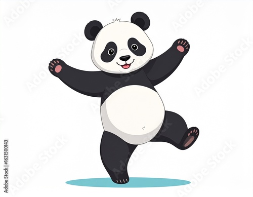 © Rahmat , Naklejka premium Happy Cartoon Panda Standing with Arms Up and One Leg Raised
