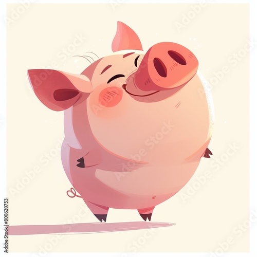 © r3mmm, Fototapeta premium Happy Cartoon Pig Dancing with Joy