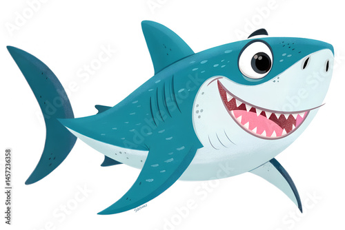 Obraz premium Happy Cartoon Shark Character Illustration for Kids