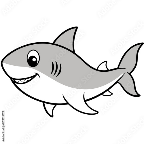 © LaboniAkter, Naklejka premium Happy cartoon shark illustration