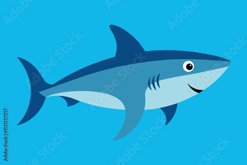 © MDHASIBULHASAN, Obraz premium Happy cartoon shark swimming in blue ocean