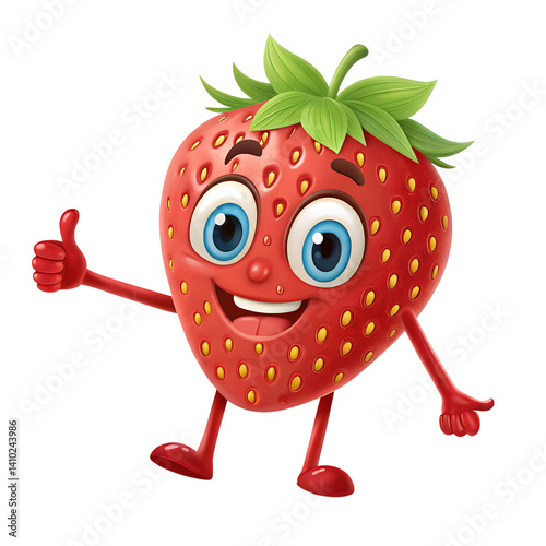 © Bibekananda, Fototapeta premium Happy cartoon strawberry character Strawberry