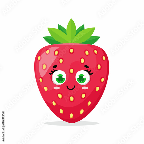 Obraz premium Happy cartoon strawberry character with adorable eyes and smile perfect for children's designs