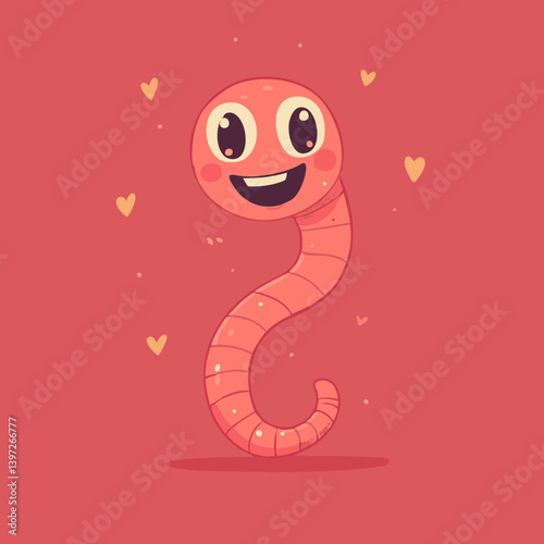 Fototapeta premium Happy Cartoon Worm with Hearts