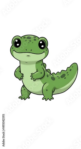Fototapeta premium Happy cartoonish gecko stands smiling