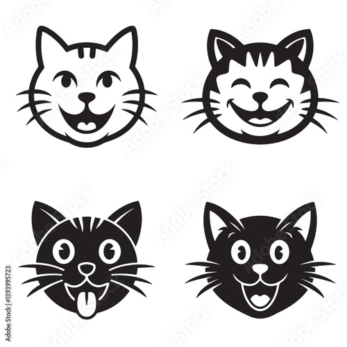 © Khaled Hasan, Fototapeta premium Happy Cat Silhouette Bundle Clip Art Vector Illustration