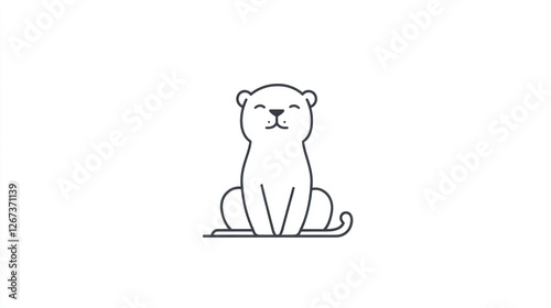 Fototapeta premium Happy cat sitting, white background, simple line art, children's book illustration