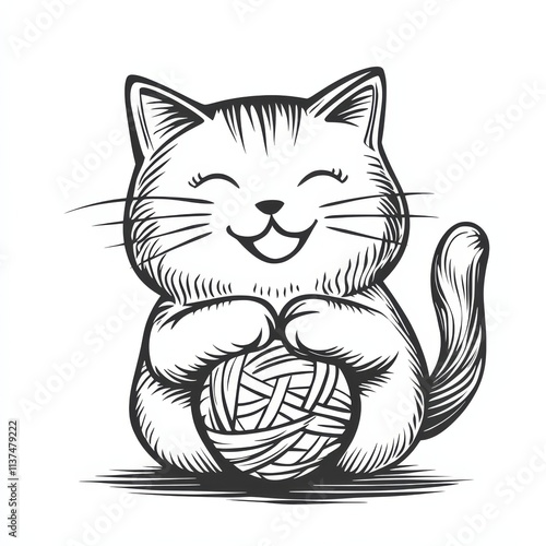 Obraz premium Happy Cat with Yarn Ball