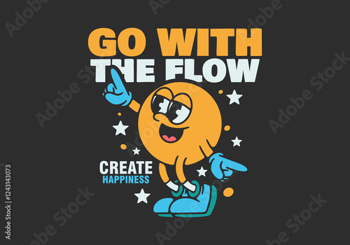 Fototapeta premium Happy character in dance pose, dark background. Good for sticker print
