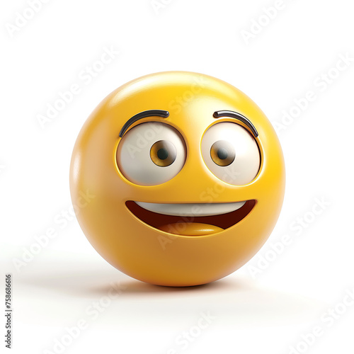 © Svetlana, Fototapeta premium happy, cheerful yellow smiley face on a white background, 3D