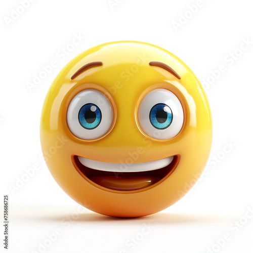 © Svetlana, Fototapeta premium happy, cheerful yellow smiley face on a white background, 3D