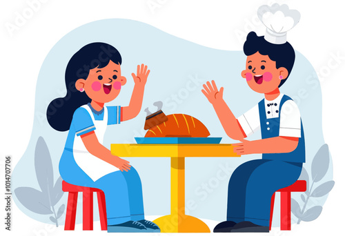 Fototapeta premium Happy Chef and Friend Enjoying a Meal