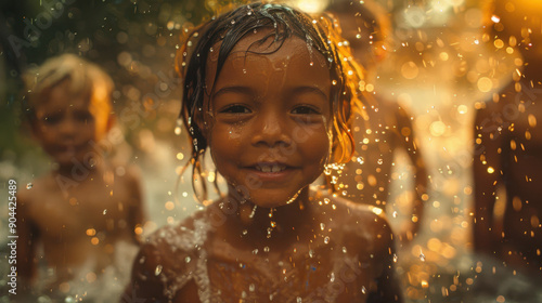 Obraz premium Happy child playing in water with splashes, capturing a joyful moment filled...