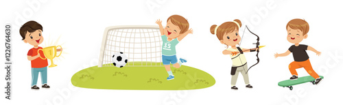 © topvectors, Fototapeta premium Happy Children Playing Sport and Doing Physical Activity Vector Set