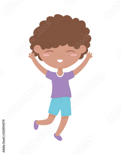 © Stockgiu, Obraz premium happy childrens day, cute boy hands up celebration cartoon character