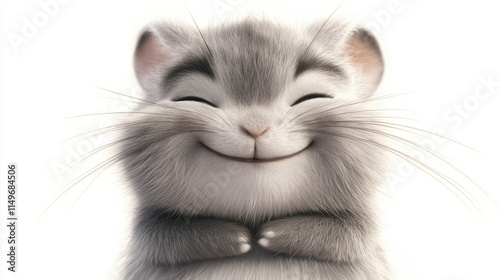 Obraz premium Happy Chinchilla Close-Up Portrait Against White Background