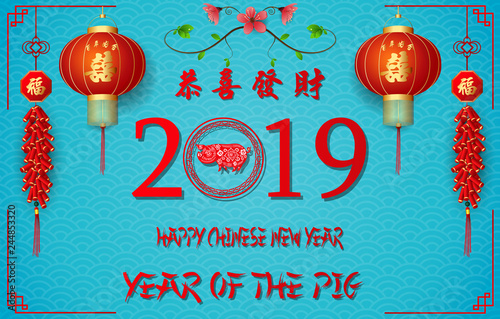 Naklejka premium Happy Chinese New Year 2019 card year of the pig