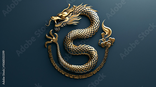 © © Raymond Orton, Obraz premium Happy Chinese New Year 2025. Chinese snake gold zodiac sign for card design. China lunar calendar animal.