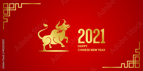 © JFRSTWN, Naklejka premium happy chinese new year 2021 with ox