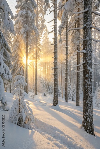 Naklejka premium Happy Christmas Day Background Design - Festive Holiday Decorations with Snow and Lights