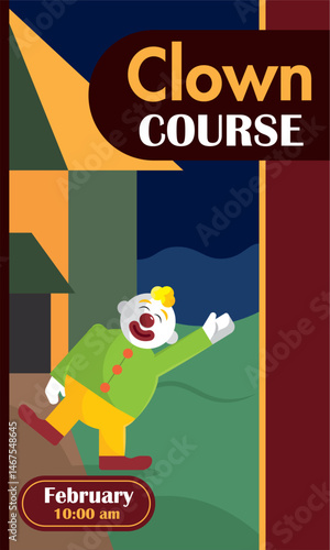 Fototapeta premium Happy clown near course. Vector