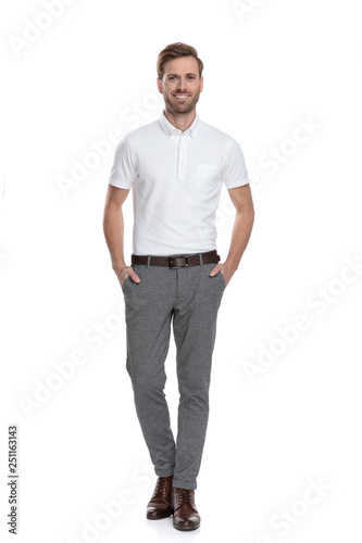 Fototapeta premium happy confident casual man standing with hands in pockets