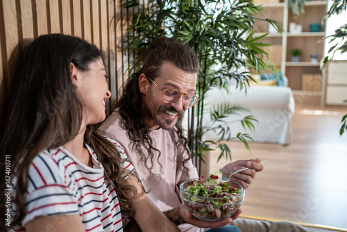 © Migma_Agency, Obraz premium Happy couple enjoying healthy salad at home