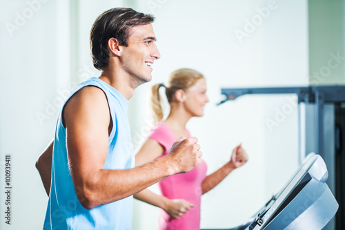 © djoronimo, Obraz premium Happy couple exercising in gym