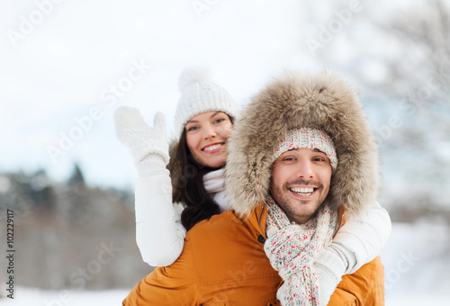 © Syda Productions, Fototapeta premium happy couple having fun over winter background