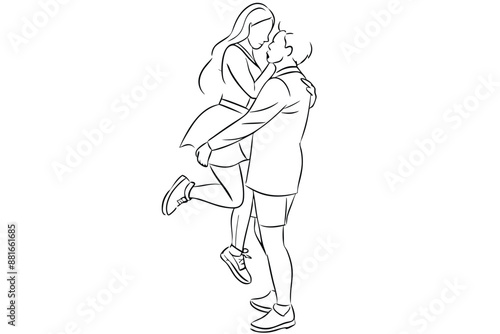 Fototapeta premium Happy Couple Line Art Loving Smile Design