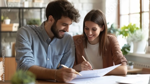 © wannathon, Obraz premium Happy Couple Signing Documents.