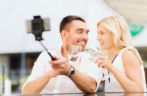 © Syda Productions, Fototapeta premium happy couple taking selfie with smartphone at cafe