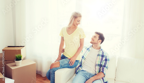 © Syda Productions, Obraz premium happy couple with big cardboard boxes at new home