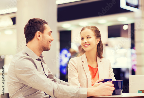 © Syda Productions, Obraz premium happy couple with shopping bags drinking coffee