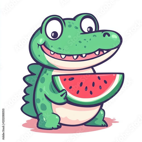 © lestari, Fototapeta premium Happy crocodile eating watermelon slice
