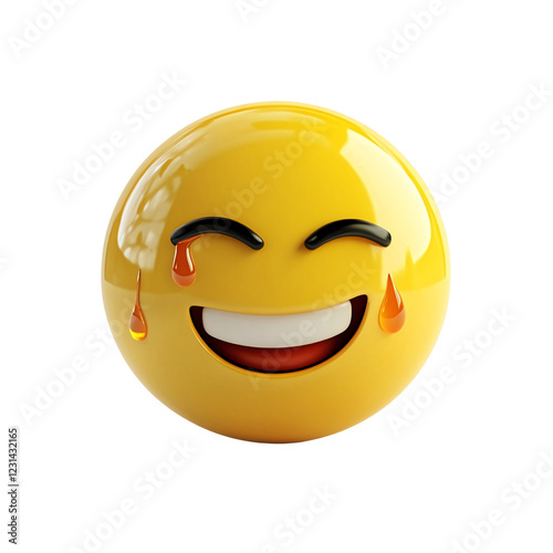 © ASyarif, Fototapeta premium Happy crying emoticon, digital rendering, isolated background, web use isolated on transparent or white background. Generative ai