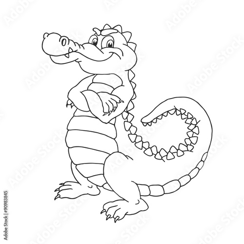 © ollymolly, Naklejka premium Happy cute cartoon alligator. Crocodile vector outline.