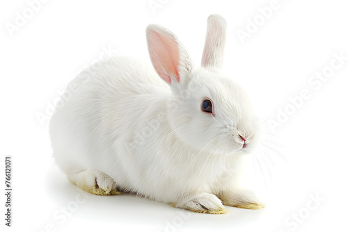 © ELmidoi-AI, Obraz premium Happy, cute white rabbit isolated on a white background, suitable for Easter celebrations or as a pet illustration.