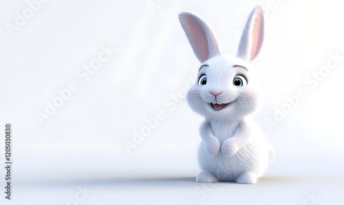 © Maryanto, Fototapeta premium Happy 3D bunny sits, white background, Easter