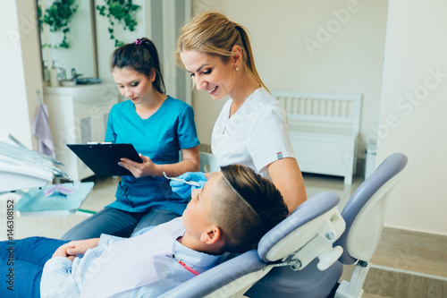 © Iryna, Obraz premium Happy Dentist and her assistant carrying out a thorough examination