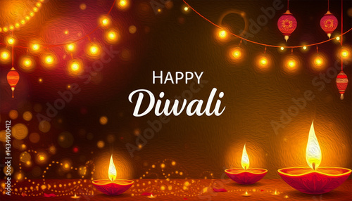© Wioletta, Fototapeta premium Happy Diwali illustration. Pattern for banners, covers, greeting cards, for printing on wall decorations.