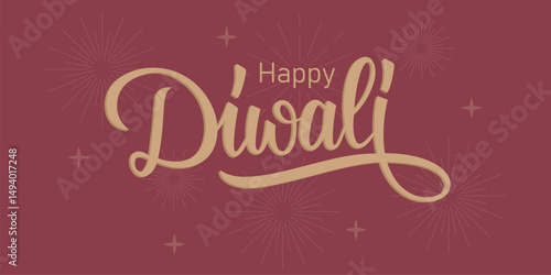 © The Little Foot, Naklejka premium Happy Diwali text. Festival of lights. Greeting card or holiday banner. Vector illustration