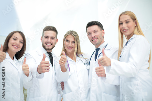 Fototapeta premium Happy doctors smiling and showing thumbs up.